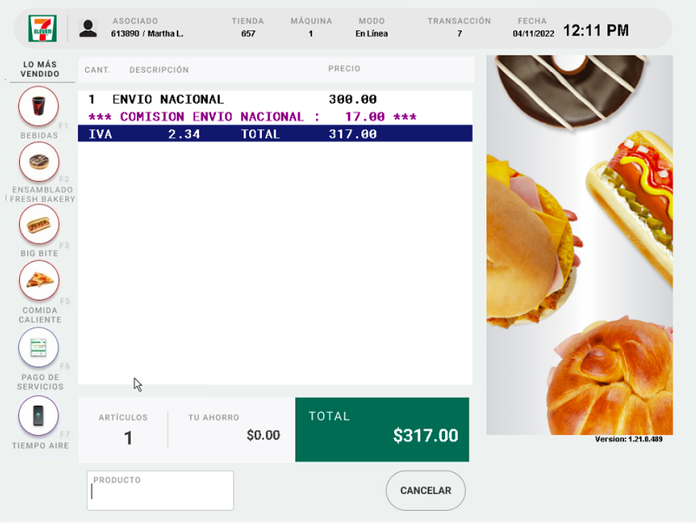 7. Se mostrará el monto del envió y su comisión. Recibe el efectivo y entrega el ticket al cliente.