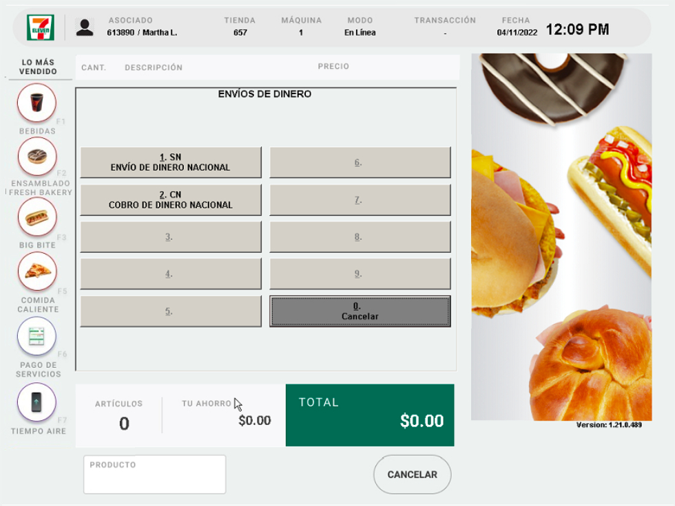 2. Selecciona la opción Envío de Dinero Nacional.
