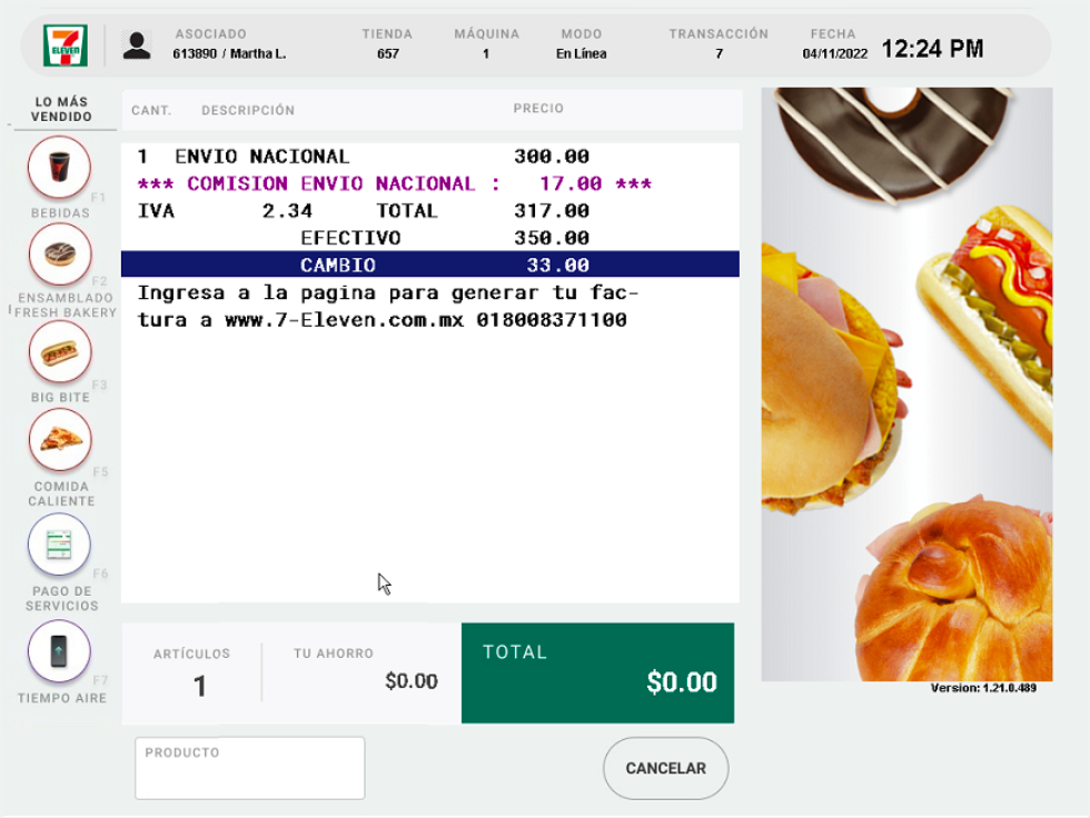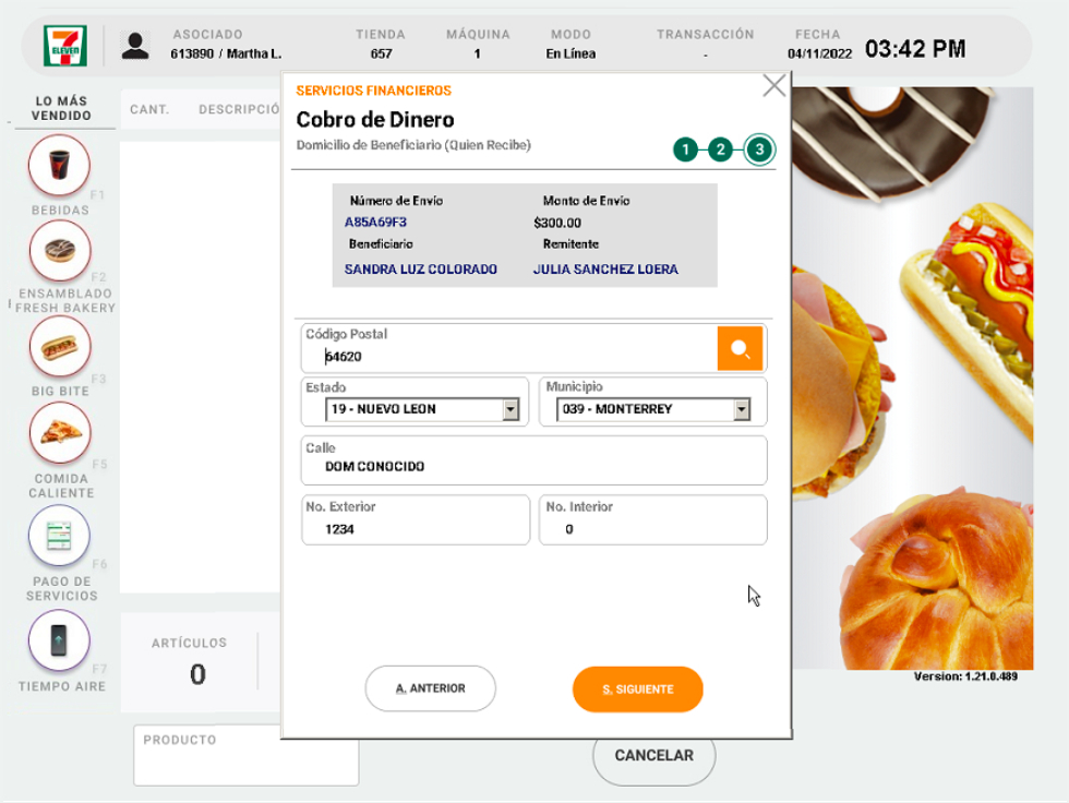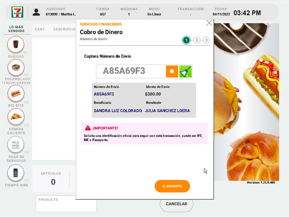 6. En este paso debes entregar el efectivo y el ticket al cliente.