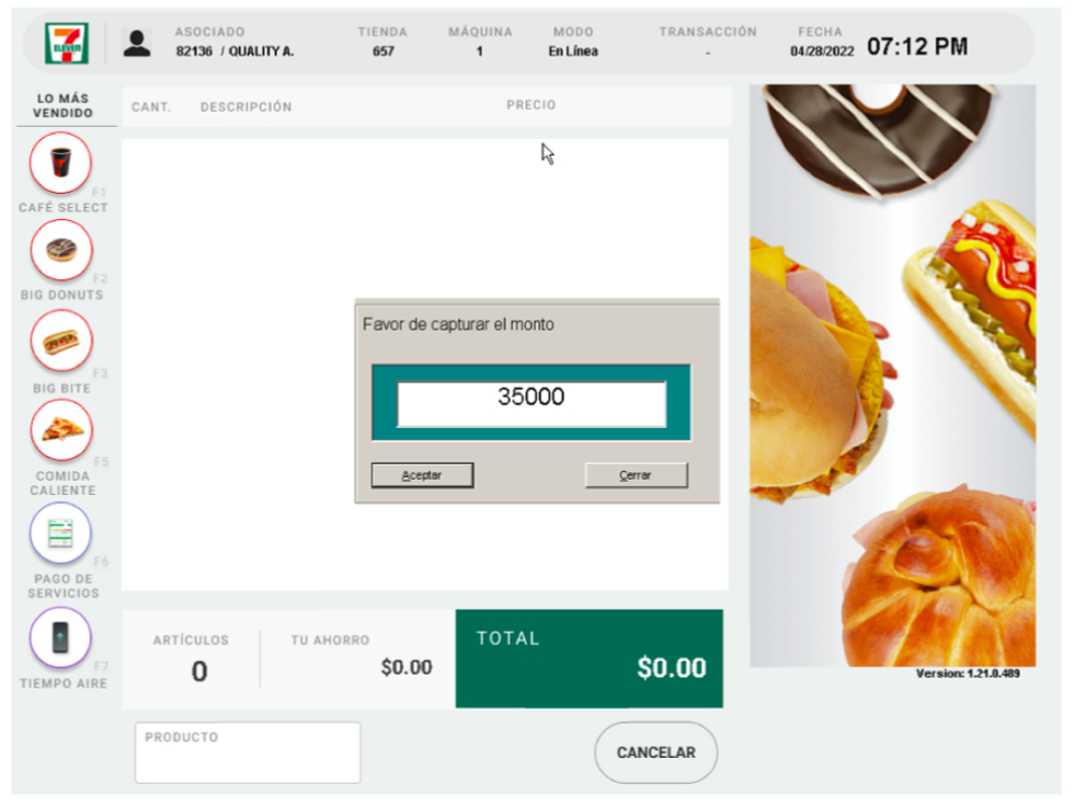 2.Capturar el monto y presionar botón “Aceptar”.