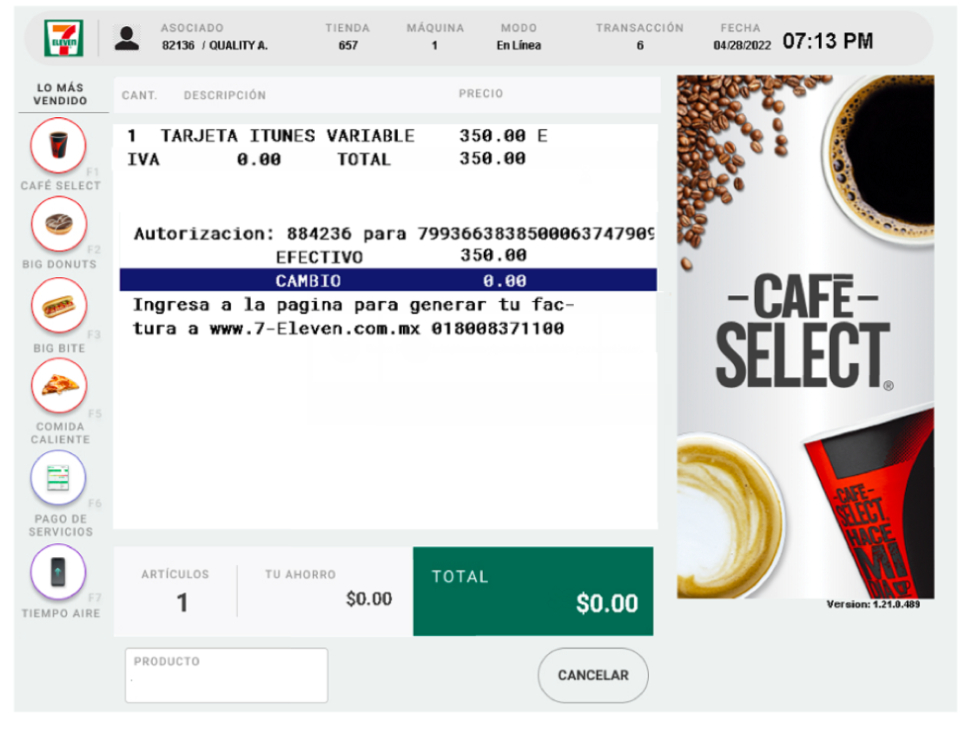 3.Totaliza la transacción.