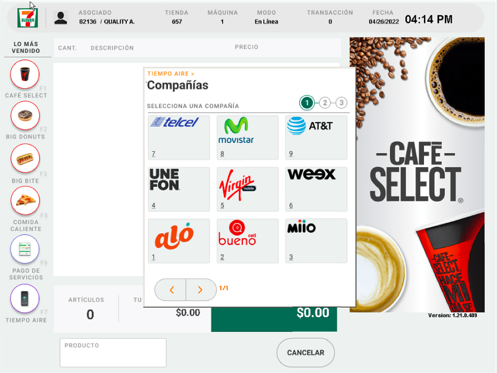 2. Selecciona la compañía celular de la que vayas a realizar la recarga.