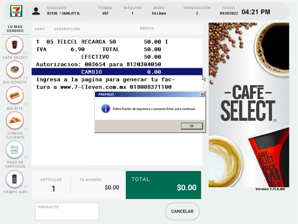 5. Totaliza la transacción.