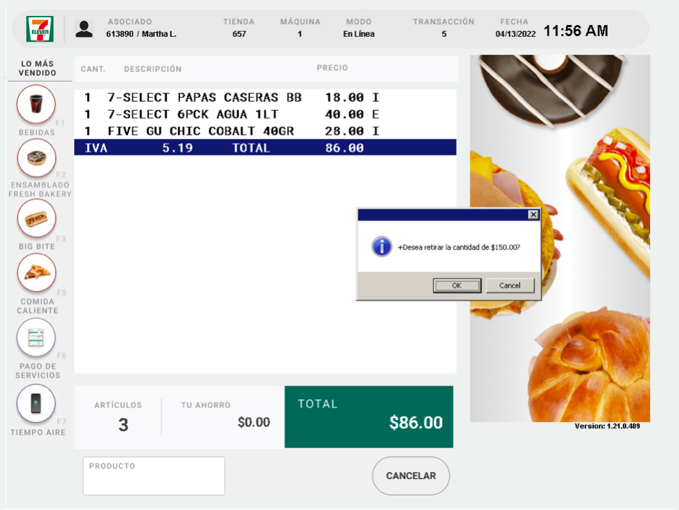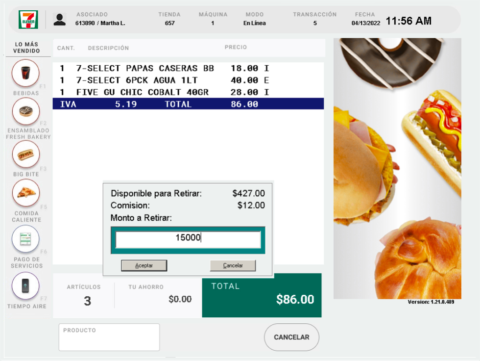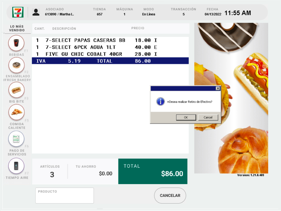 Retiro de efectivo CON compra de mercancía